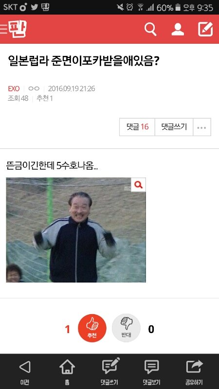 어떻게 받게 되었냐면 그 글쓴이가 글 올려서 내가 첫번째로 댓 닮