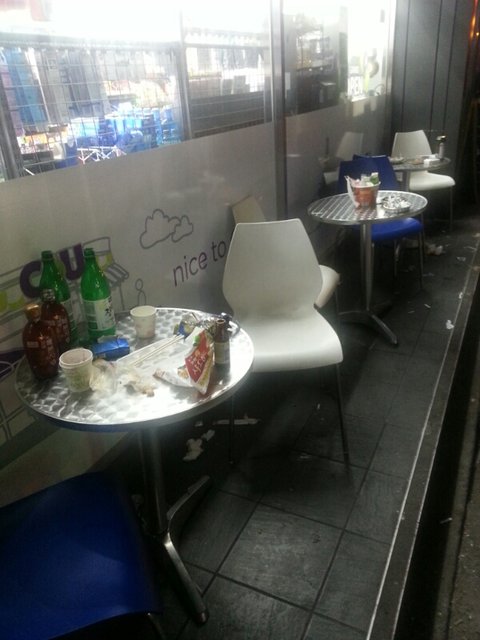 편의점이 음식점인지 알고 자기가 먹은 쓰레기 두고가면 당연히 알바생이 치우는건줄 아는 사람들은 커피숍이나 패스트푸드점 가서도 자기가 먹은거 안치우고 갈 사람들이네요.. 몇백원, 몇천원 매출올려주는거에 지나친 당당함이 있을지 모르겠지만 마찬가지로 의무가 아님에도 먹고 쉬며 얘기 나눌 수 있는 장소 제공해주는 편의점 쪽에 고마운 마음을 느껴야 하는게 맞지 않나 하거든요. 과거 일했던 편의점중에는 취식대가 아예 없었던곳도 있었습니다.