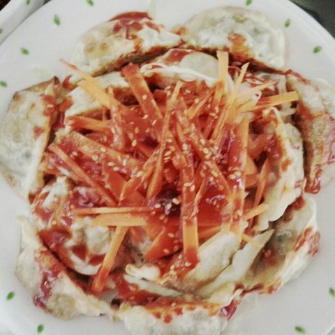 비빔만두~티비에서 나오길래 한번 해봤어요 만두 튀기고 양파 당근 양배추썰고