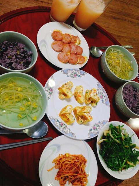 흑미콩밥&콩나물국&햄구이&계란말이&콩나물무침&미나리무침