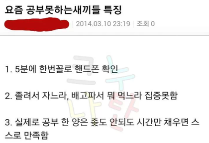 근데 쟤는 공부를 얼마나 잘하길래 욕까지 하면서 공부못하는 애들 특징을 적어놓냐