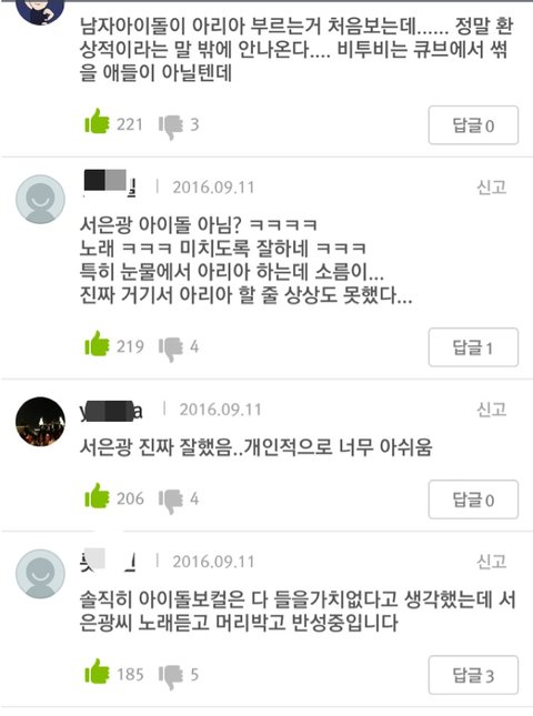 솔직히 비투비 실력이니뭐니해도 그냥 아이돌그이상그이하도 아니라고 생각했었는데 여기댓처럼 완전 편견깼던 방송이었고 말만 서은광서은광 들어왔지 아이돌중에 이런 실력자가있을줄은 몰랐음