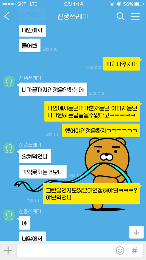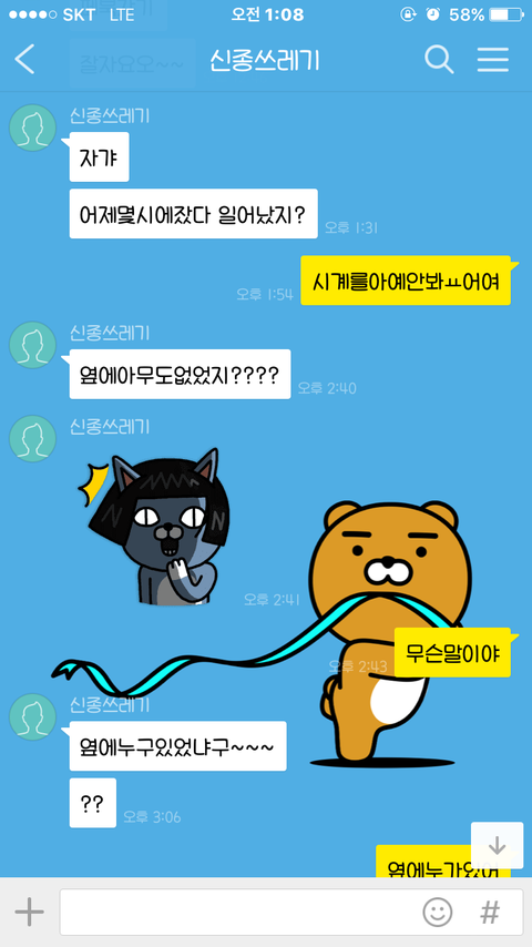 근데 다음날ㅋㅋㅋㅋㅋ 나보고 누구랑 있었냐며