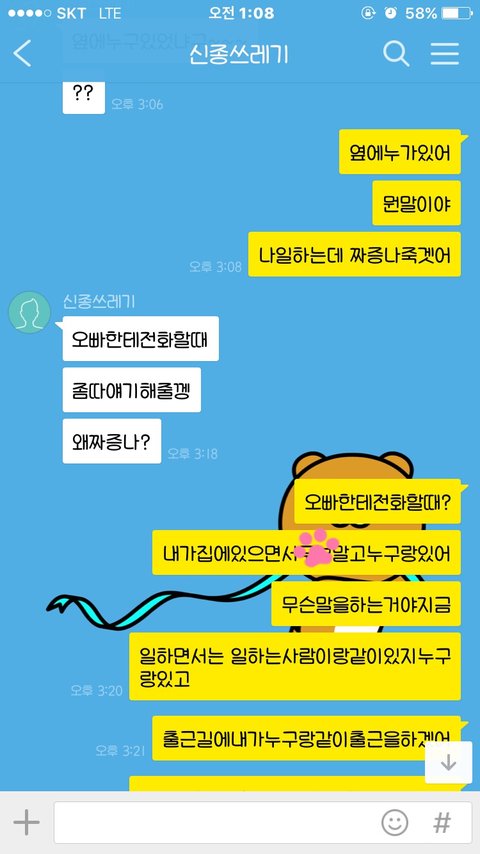 근데 다음날ㅋㅋㅋㅋㅋ 나보고 누구랑 있었냐며