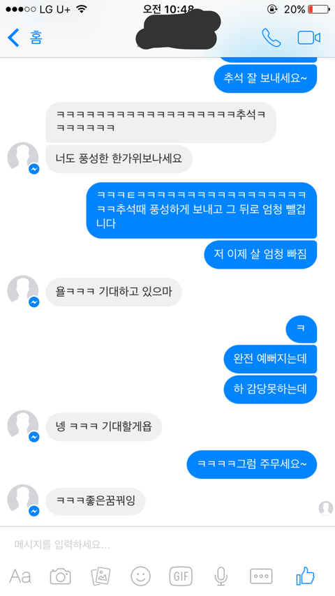 이렇게 카톡이 옴ㅋㅋㅋ