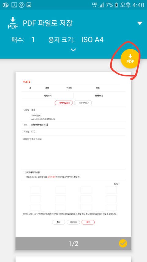 이거 뜨면 취소 눌러~ 그럼 피디엪 캡쳐 된거임ㅇㅇ!