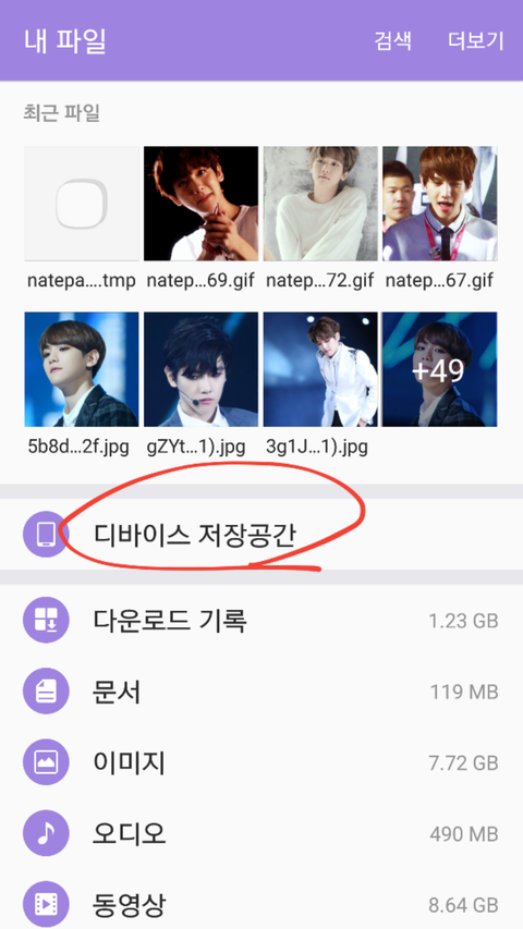 4. 내파일 들어가서 '디바이스 저장공간' 들어가면 개꿀b