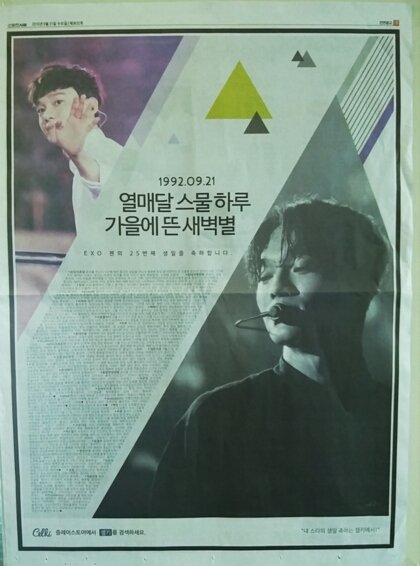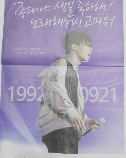 종대 신문 생일광고 넘 이쁘게 잘 나왔다.