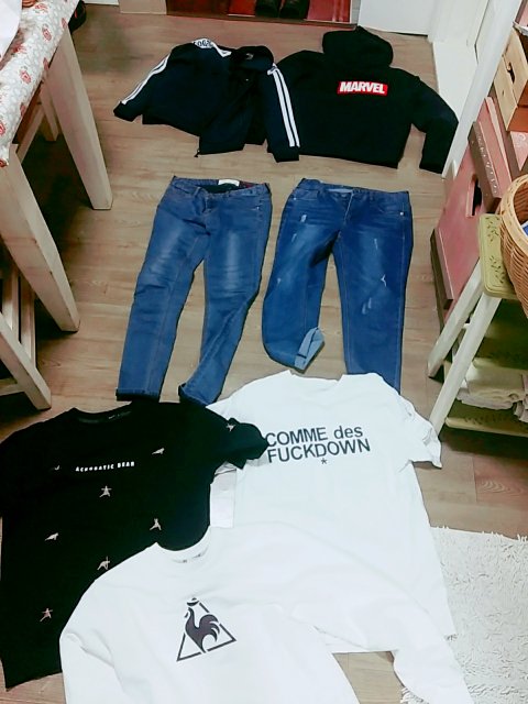 옷은다이쁘당 바지도 잘삿고 르꼬끄 흰색맨투맨이쁨