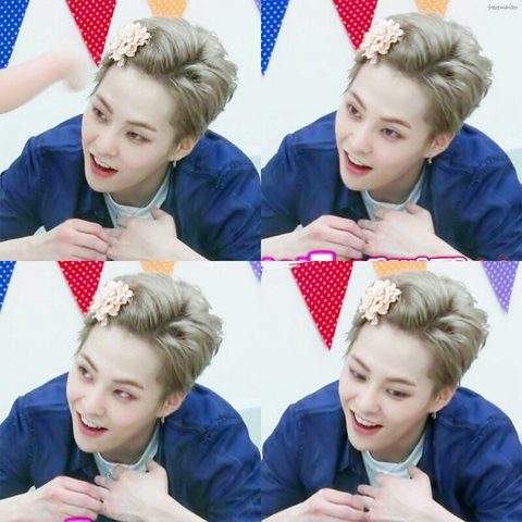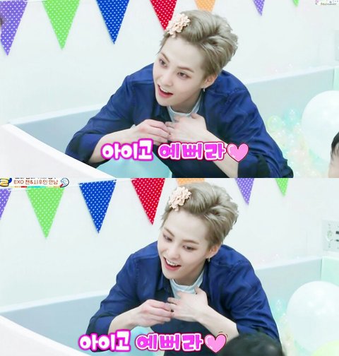 웅녀들 시우민 머리위에 (무엇인가)올린거 사진있어?