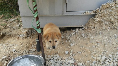 그러던 어느날 비어있는 컨테이너 쪽에서 새끼 강아지 소리가 들려 확인해보니 그 무리중 한마리였던 개한마리가 컨테이너 밑에서 6마리의 새끼를 낳았는데 3마리는 죽고 3마리만 건강하게 잘키워내고 있었습니다.