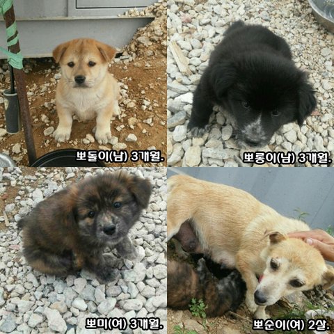 들개로 태어난 새끼 3마리와 어미견 뽀순이.