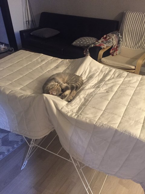 축축한 이불을 건조대에 널어놓은 위에서 자는걸 무척 좋아하더라구요! 어쩌다보니 계속 자는 사진이네요 ㅋㅋ