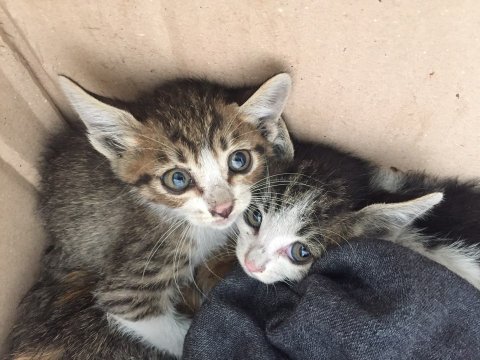 두번째 출산한지 얼마 안된터라 남겨진 새끼냥이들 4마리를 구조하였습니다.