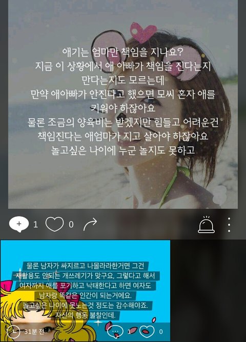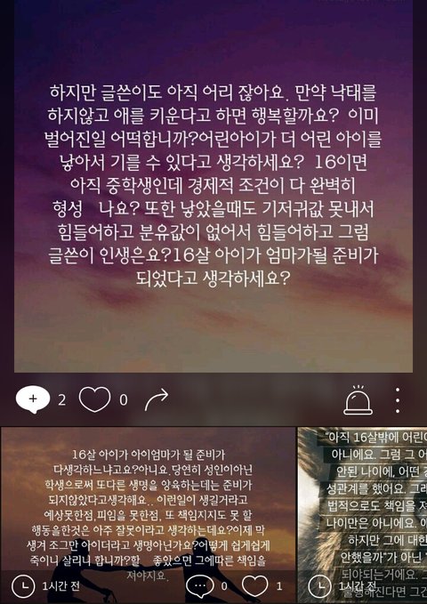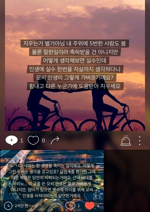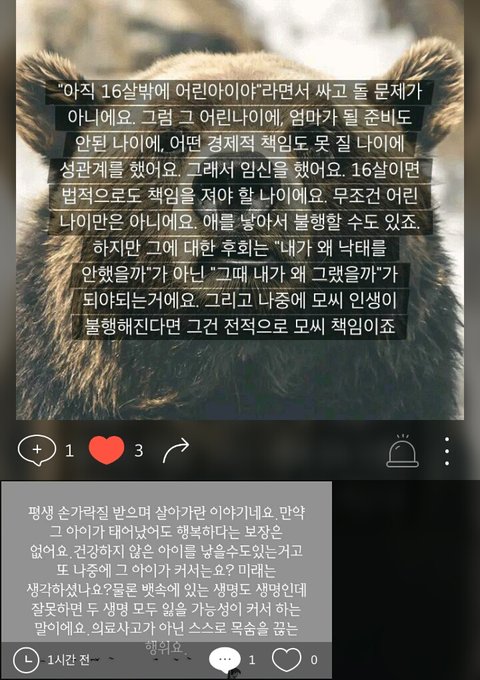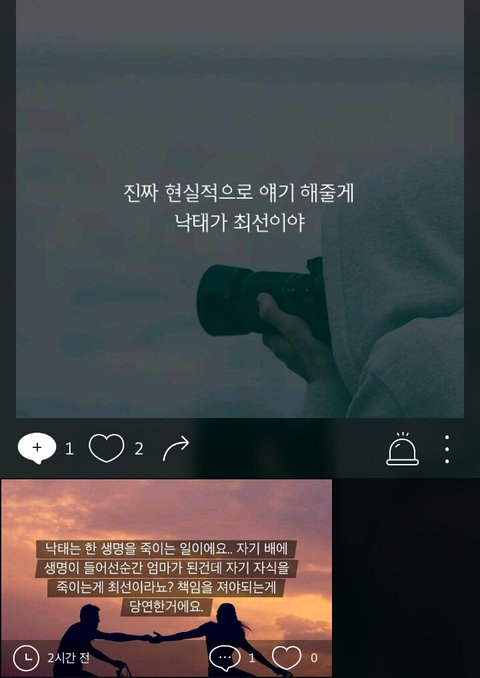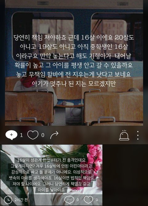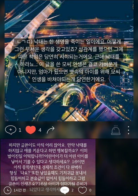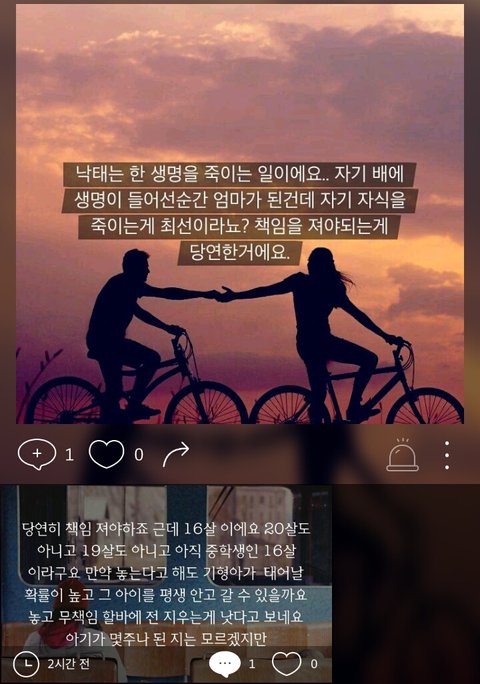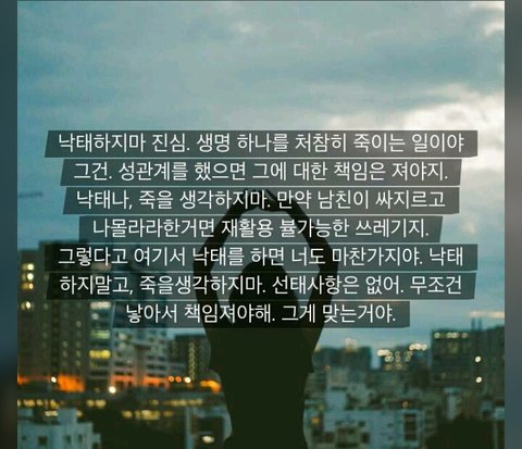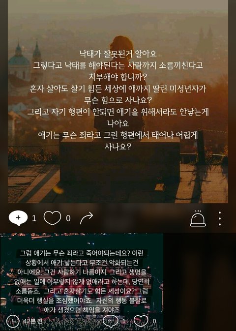 근데 거기 댓글들 살펴보니까 반이 낙태하라는 댓글인거야 정말 어이없어서 대댓글로 내 생각들을 주저리주저리 썼어. 그러니까 다 저런식으로 나오는데 내가 틀린건가?