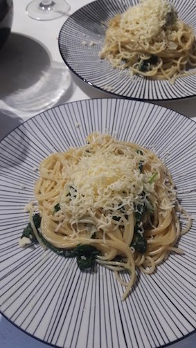 시금치 곁들인 크림파스타, 파마산 치즈로 토핑