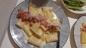 이건 파마햄이랑 치즈 올린 크림 파스타에요