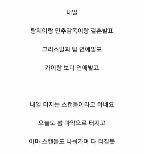 이건 루머가 아닌게 아이돌 관심없는 남초에 어떤 일반인 남자가 화곡동 호텔에서 카이가 여돌이랑 있는거 목격하고 올린거임