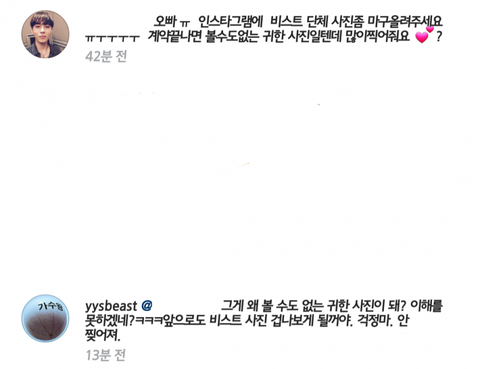 진짜 미쳤나 요섭이 인별에 어떤뷰티가 저 댓글 달았음.ㅋㅋㅋㅋ 초딩인가 아오;