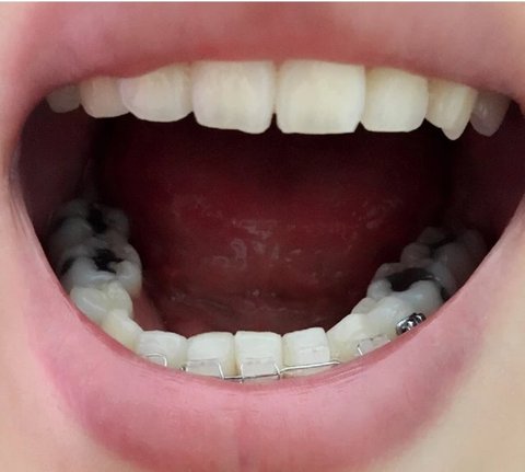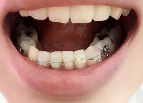 U자 형이 되야되는데..옆으로 삐뚤어져 있는데..이제 다 끝났다고 밑에교정기를 뺀다고하네요,,