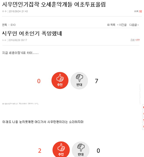 9월초 세훈이 시우민투표수 비슷하게 나왔을때 판중계