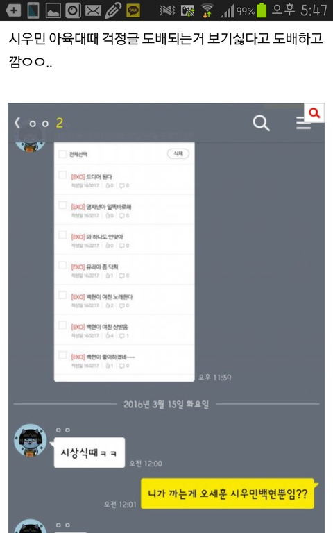 디오 까이면 시우민 패트립하는 엑갤 디오팬들