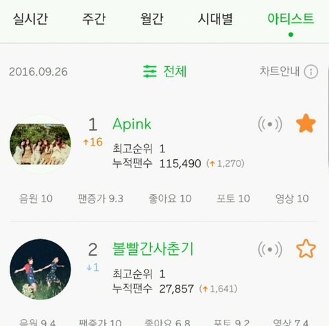 멜론이랑 네이버가 좀 낮긴 해도 다른 차트들 보면 거의 다 높음.
