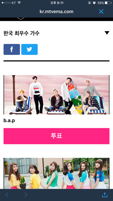 http://kr.mtvema.com/vote?category=best-korea&answerId=fcbsij 열투표하자ㅎㅎ