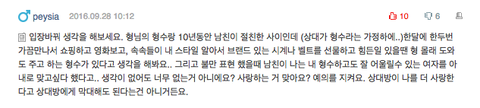 선 본지 1년도 안돼서 결혼한 오빠 형수랑 10년을 넘게 본 형부가 같냐.