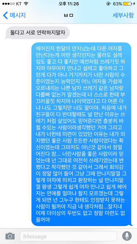 하...널 믿고 지낸 시간들이 너무 힘들었다.