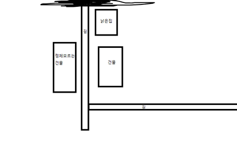 그냥 끝없는 길이 있었데 두갈래로 그리고 그냥 엄청 허름한 집 한채, 건물 두개가있었는데