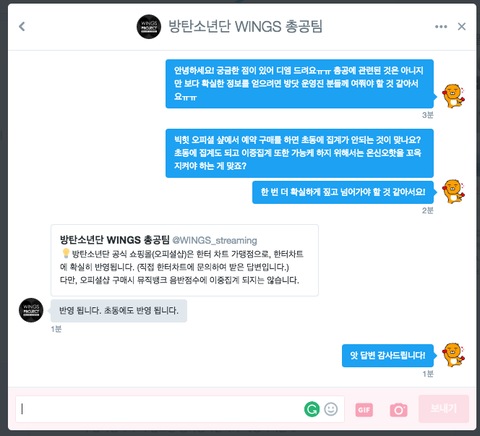 내가 확실하게 답변 얻어오기 위해서 직접 방닷 분들께 연락드려봤는데
