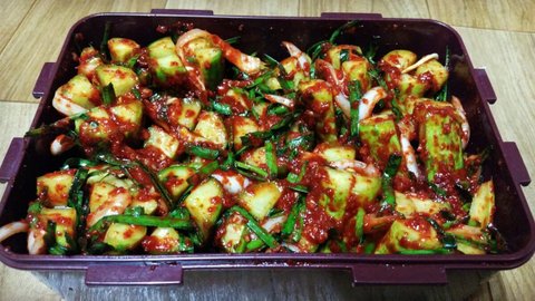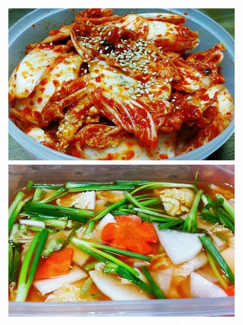 나박물김치와 하고남은재료로 만든 겉절이입니다