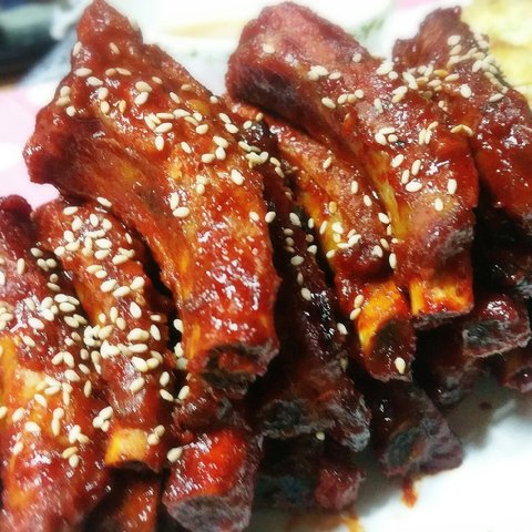 등갈비오븐구이와 닭저미고 야채넣고소스만든 닭꼬치
