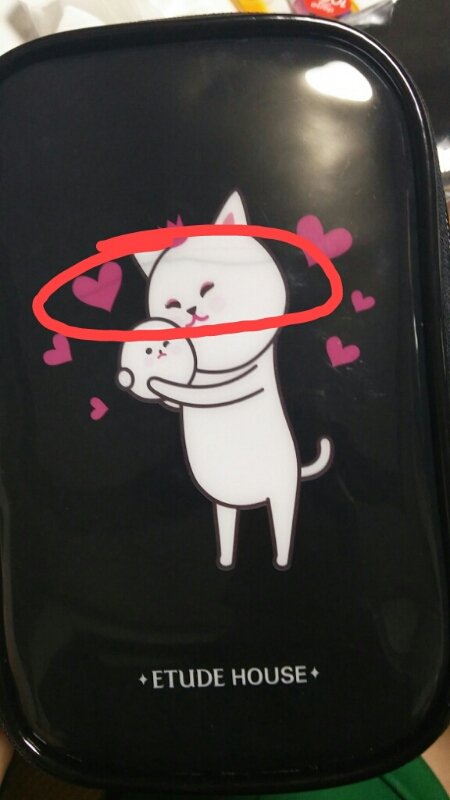 뒤에는 손자국도 많고... 에뛰드파우치는 무슨 흰 큰파우치에 담고 거기에 비닐봉지까지 주잖아...