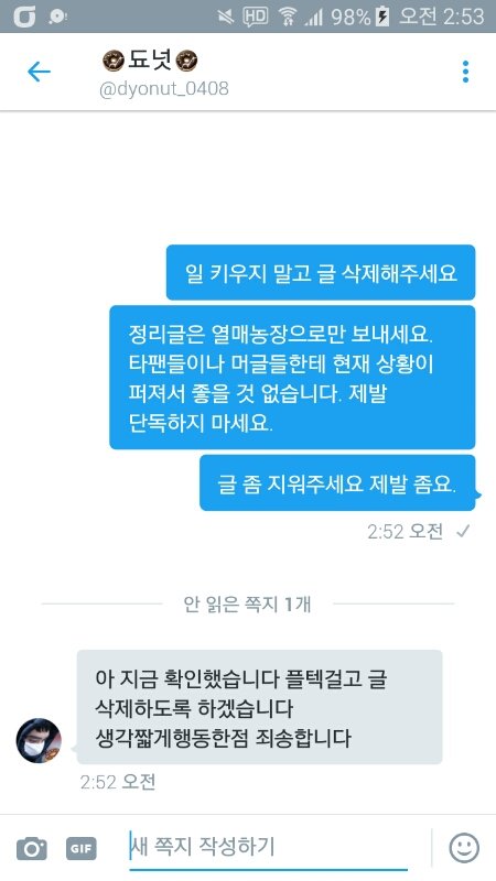 됴넛한태 디엠 답변 받았다
