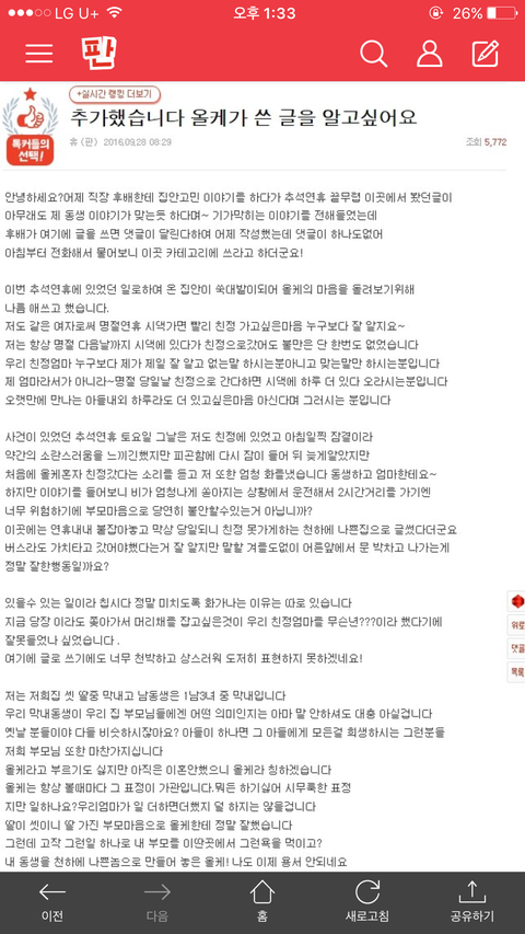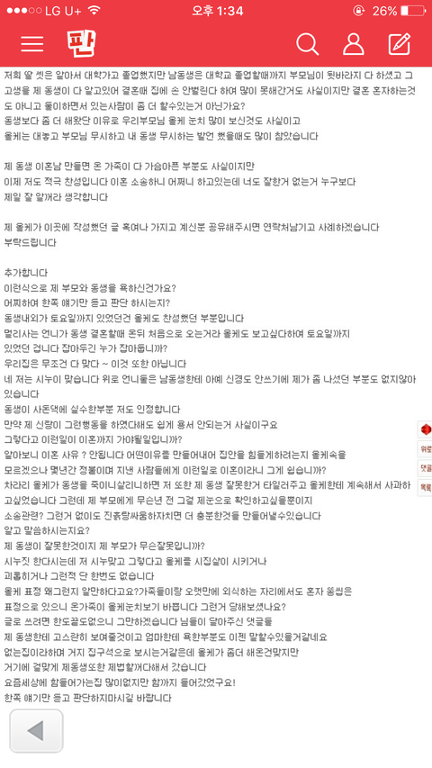 올케분이 글 봐도 상관없다 하셔서 그간의 원글 올립니다 하도 궁 금해 하시는 분들이 계셔서 올려봐요 부디 해결 잘 되시길! 응원할게요! **댓글로 시누 마지막글 올릴게요**