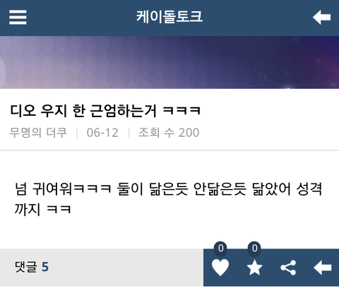 시우민 우지 닮았단소리 나오니까 이글씀 판에서 시우민글 디오로 따라쓰는거 ㄷㅋ에서도 똑같이함 ㅋㅋㅋ