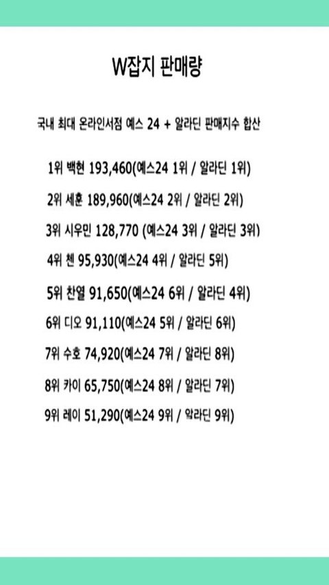 시우민 백현 세훈이랑 잡지 판매량 차이..