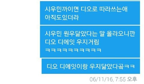 죤대맘도 인증한 디오집착 시우민 악개ㅋㅋㅋㅋㅋㅋㅋㅋㅋㅋㅋㅋㅋㅋ 시우민 우지 말나오니까 디오로 우지 따라쓴애