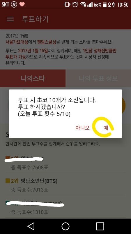3)하루에 한번씩 투표 가능