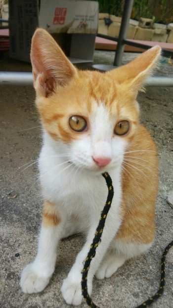 한달전 동네 어느가게앞 3개월령 새끼냥이 두마리가 줄에 묶여 있었습니다.