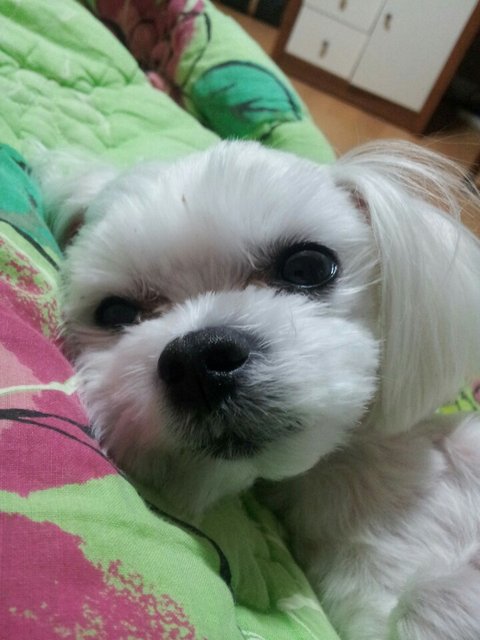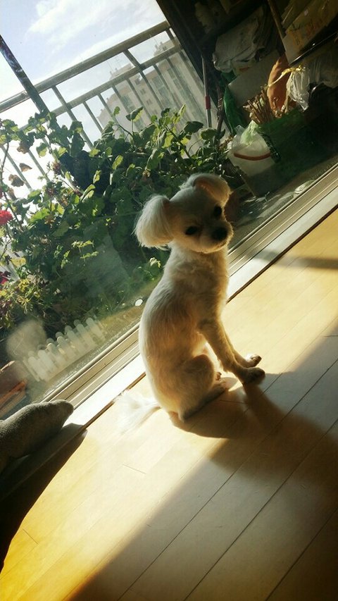 털을 한번도 안자른... 이름은 찬미라고 지었네요. 어머니가 성당다니셔서...ㅋㅋ