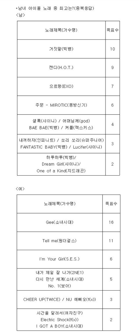나 맨윗표만 보고 내렸는데 저거 sm관계자들이 뽑은건데 그래서 유난히 sm이 많은거