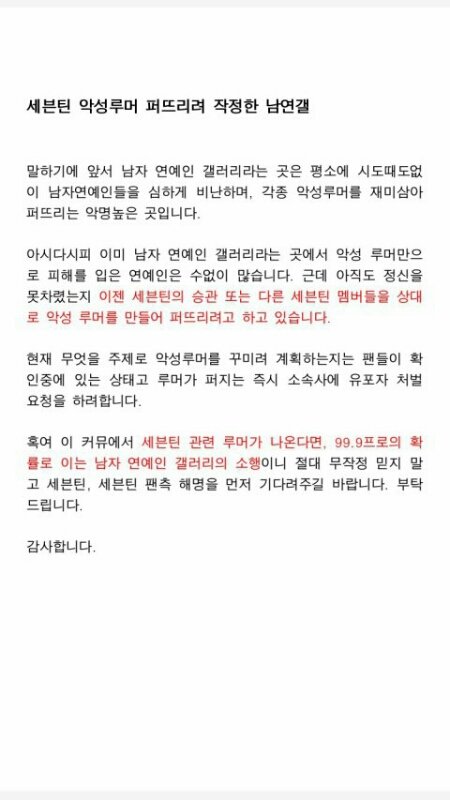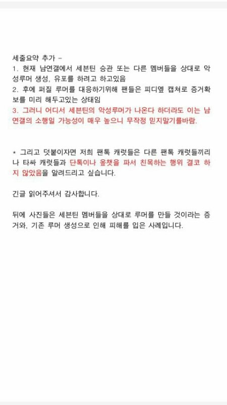 차후에 세븐틴 관련 악성루머가 퍼질때