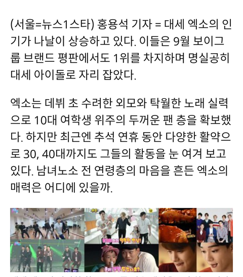 엑소, 보이그룹 브랜드 평판 1위..30∙40대도 주목