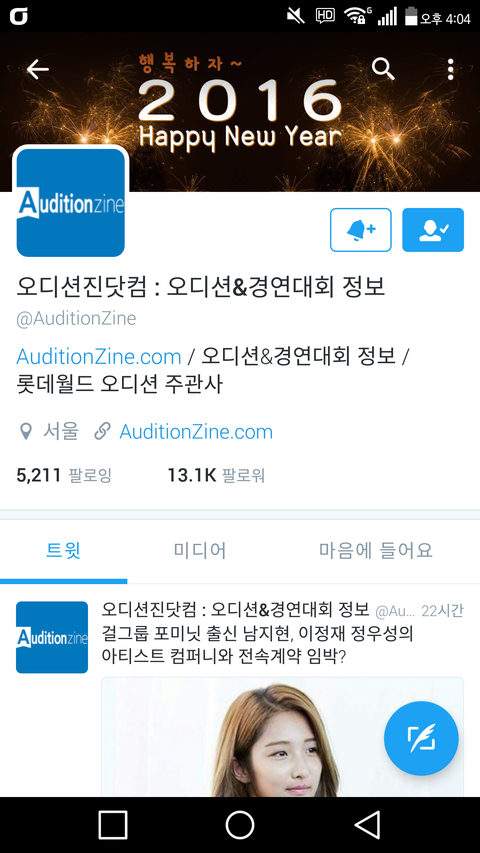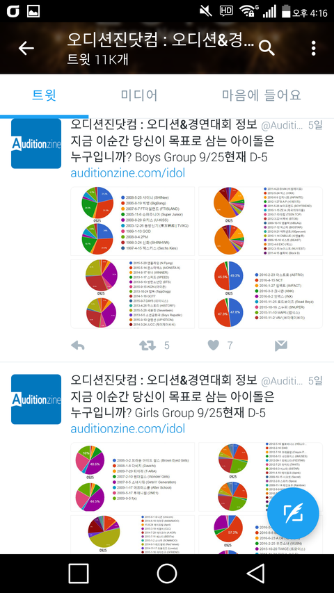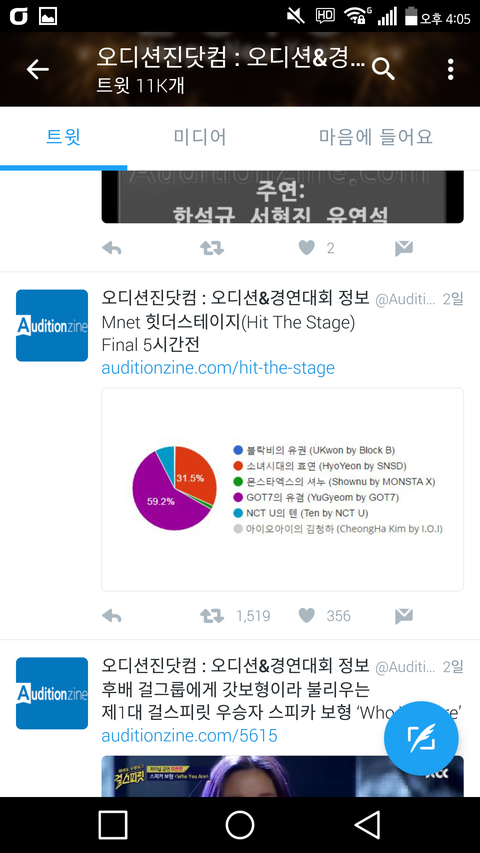 지금 힛더스 투표 하는곳이 오디션 정보 알려주는곳인데 예전부터 팔로해놨었거든?