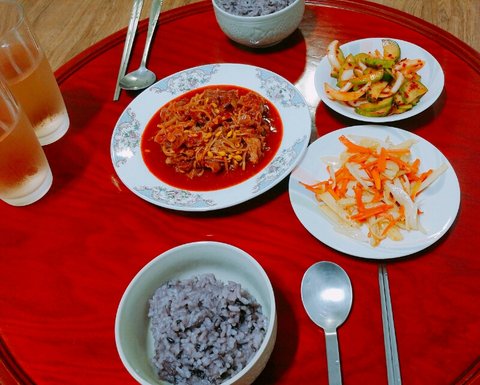 흑미밥&콩불&오이무침&감자볶음