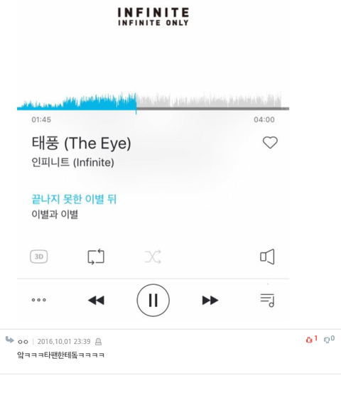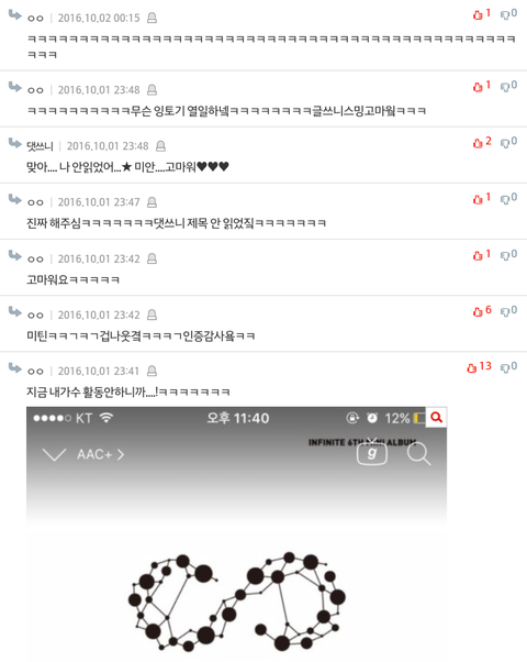 그 얘기해주러 인피니트 팬톡에 잠깐들려서 글을 씀