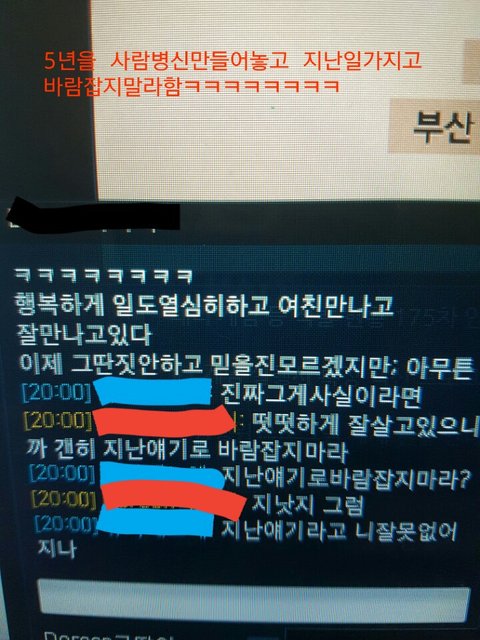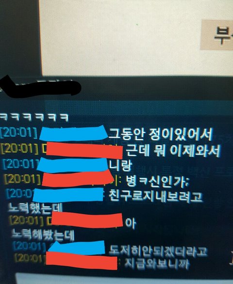 사진은 빨간색이 전남친입니다 어제 뻔뻔하게 게임에서 대화 온 내용입니다